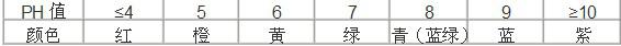 答:PH試紙檢測溶液的酸堿度時,顏色變化與PH值之間的關系為:
