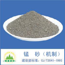 用于地下水除鐵/除錳的天然錳砂濾料應符合建設部水處理濾料《CJ/T3041-2005 》標準規定;其錳的形態應以氧化錳為主。含錳量(以MnO2計,下同)不應小于35%的天然錳砂濾料,既可用于地下水除鐵,又可用于地下水除錳;含錳量為20%~30%的天然錳砂濾料,只宜用于地下水除鐵;含錳量小于20%的錳礦砂則不宜采用。宜優先采用經過科學試驗或生產使用證明能獲得良好除鐵和除錳效果的天然錳砂品種作濾料。